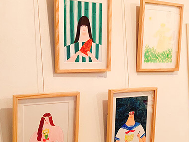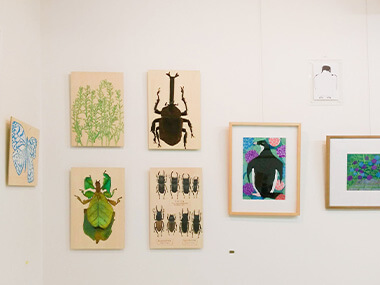 過去作から新しいものまで様々なタッチの作品で展示構成しました。